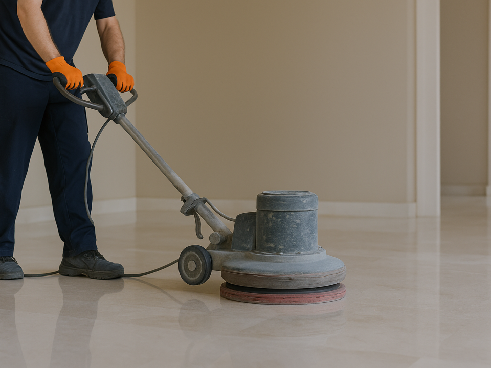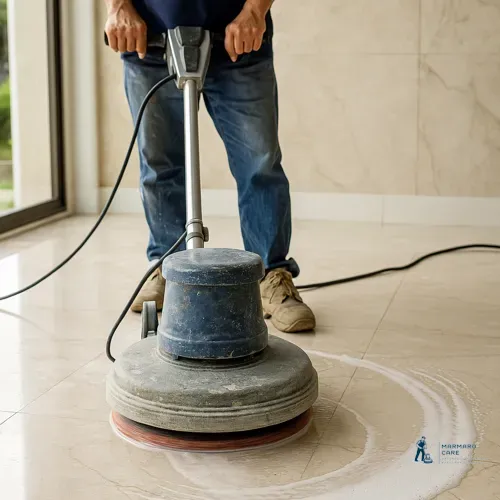 στον καθαρισμό, τρίψιμο και γυάλισμα μαρμάρων και μωσαϊκών.