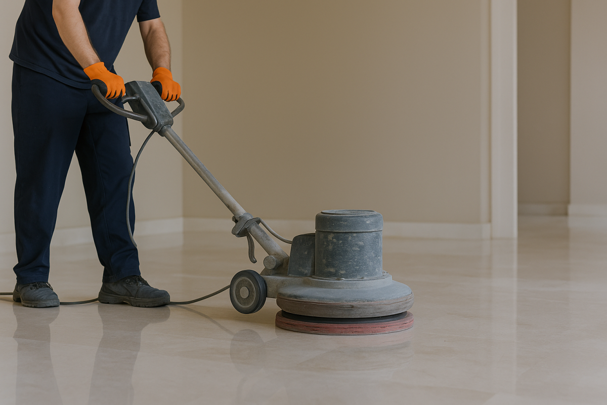 στον καθαρισμό, τρίψιμο και γυάλισμα μαρμάρων και μωσαϊκών.